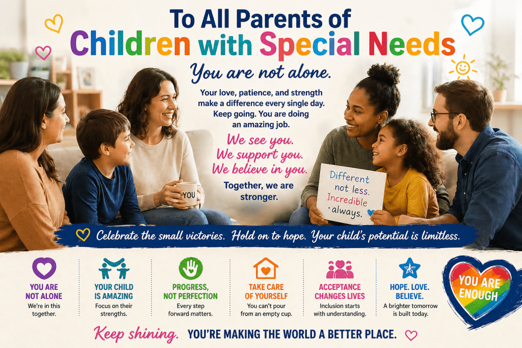 Unless we have firsthand experience, we cannot know what these parents or caregivers mentally, emotionally, physically, and financially go through. So whenever your paths cross, instead of staring at or ignoring them, why not pause and celebrate them by acknowledging their strength, courage, and determination? They need our support, understanding, and resources like https://momofspecialneeds.com/– most of all to know that we see them!